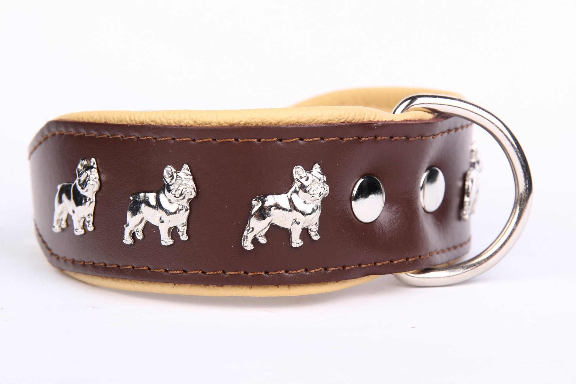 Hoogste kwaliteit handgemaakte leren honden halsband met Franse Bulldog. Gemaakt van soft Italiaans nappa leer. Verkrijgbaar in vele kleurcombinaties.